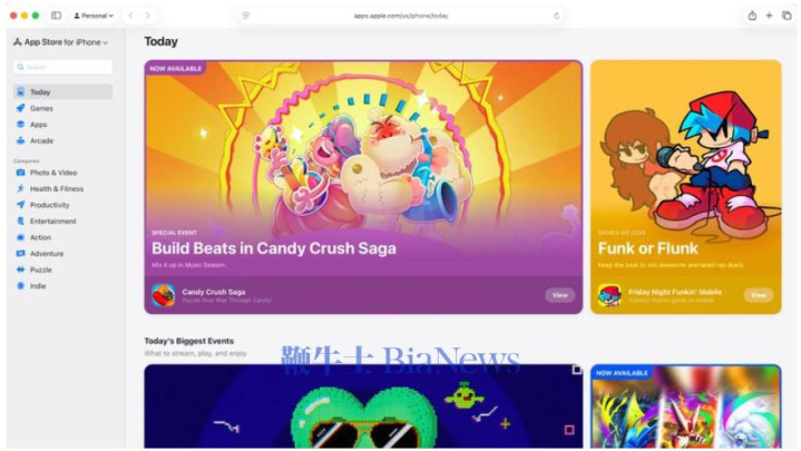 11月4日消息,据外电报道,苹果公司今天在网络上推出了全新的AppStore,用户可以浏览和搜索其所有平台上的应用程序。更新后的apps.apple.com网站为每个平台提供了一个下拉菜单,其中包括“今日”部分,其中包含应用和游戏推荐、类别以及AppleArcade游戏。